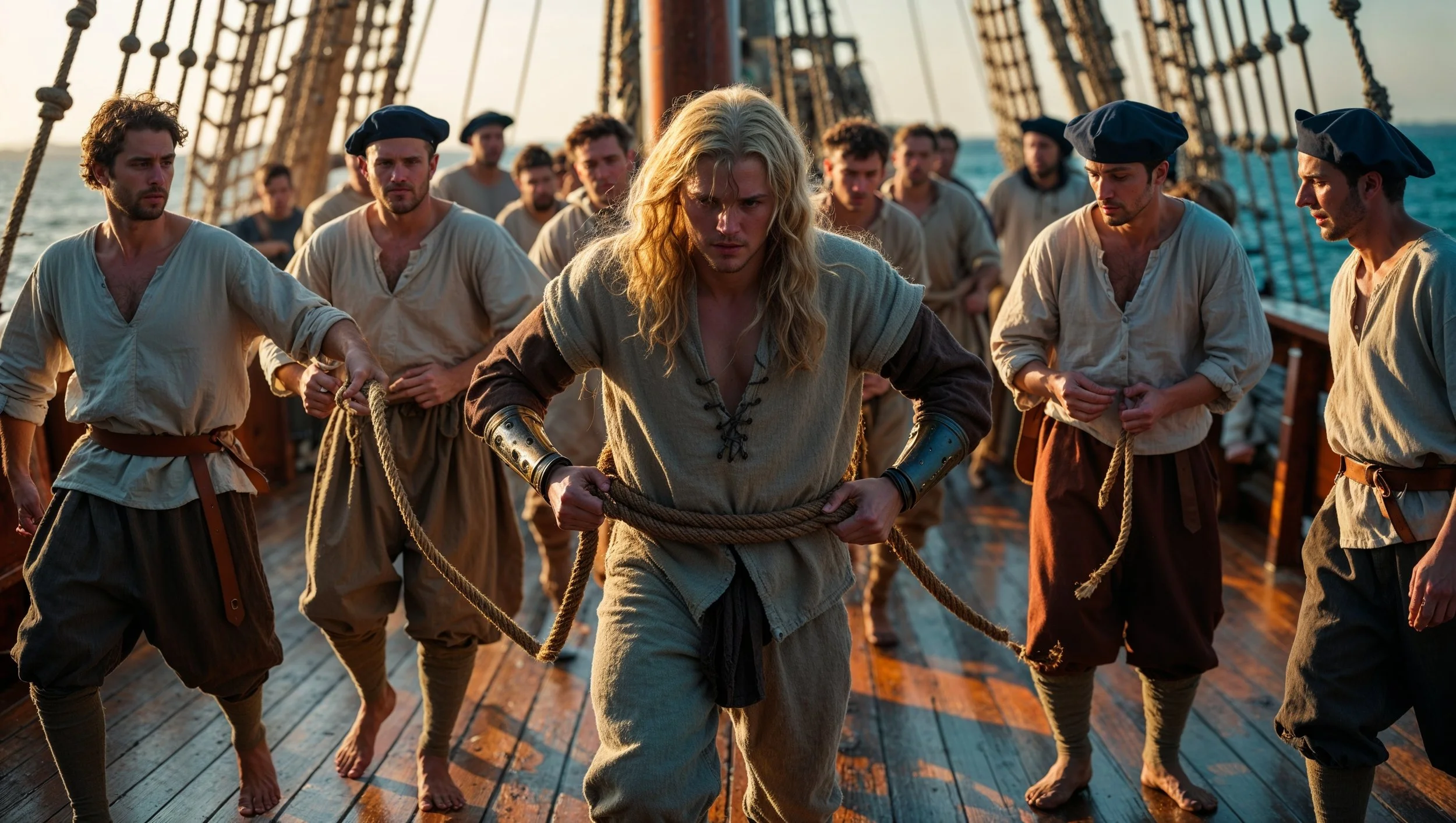 Along the deck, to where a noose,